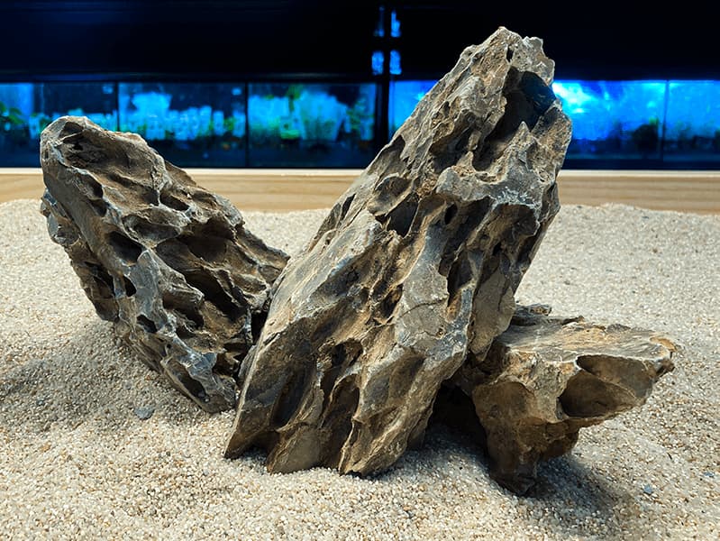 Esta roca procedente de Asia, está erosionada por el hielo y el viento con lo que adopta formas y texturas que dan mucho juego en tu acuario.