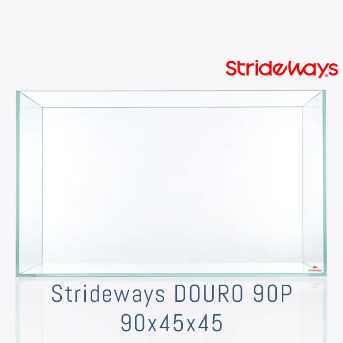 STRIDEWAYS DOURO 90P es un acuario de cristal óptico de 90x45x45 cm, de alta calidad con pegado de silicona transparente.