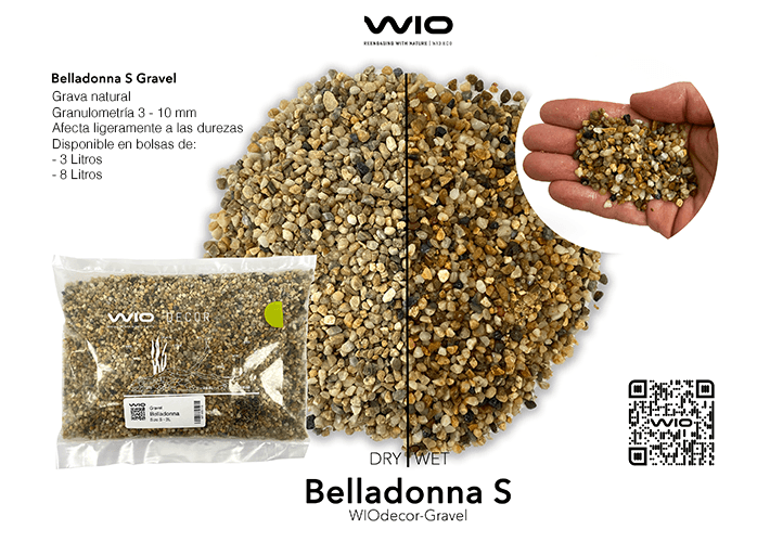 WIO BELLADONNA GRAVEL S 8 LITROS, grava 100% natural con granulometría 3 ∼ 10 mm con aspecto de grava de río de tamaño medio.