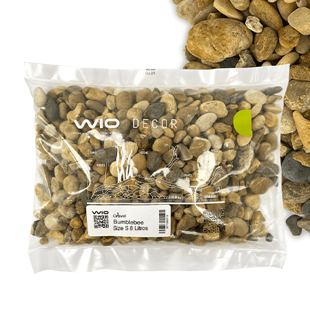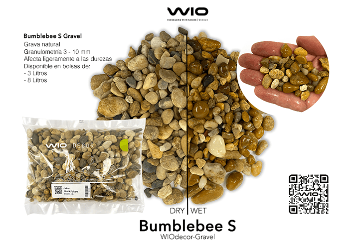 WIO BUMBLEBEE GRAVEL S 8 LITROS, grava 100% natural con granulometría 3 ∼ 10 mm con aspecto de canto rodado de río de tamaño pequeño.