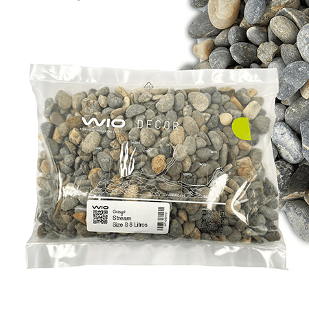 WIO STREAM GRAVEL S 8 LITROS, grava 100% natural con granulometría 3 ∼ 10 mm con aspecto de canto rodado de río de tamaño pequeño.
